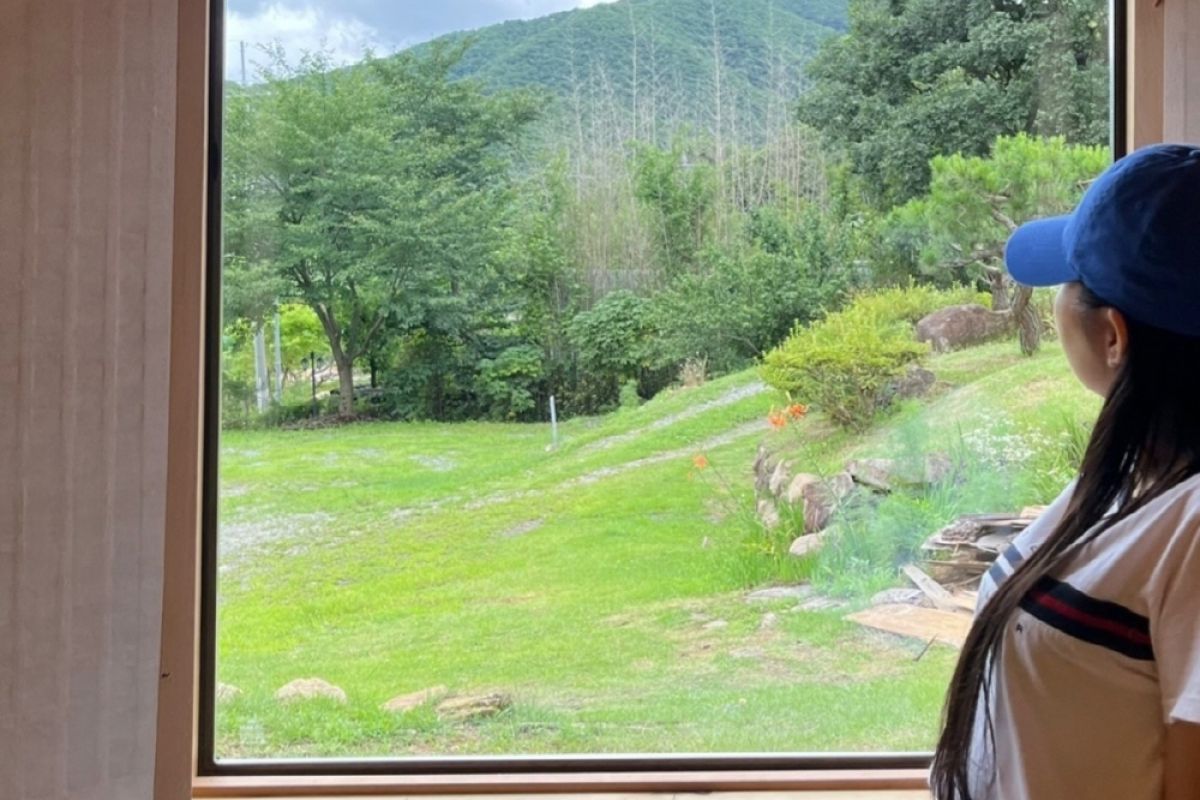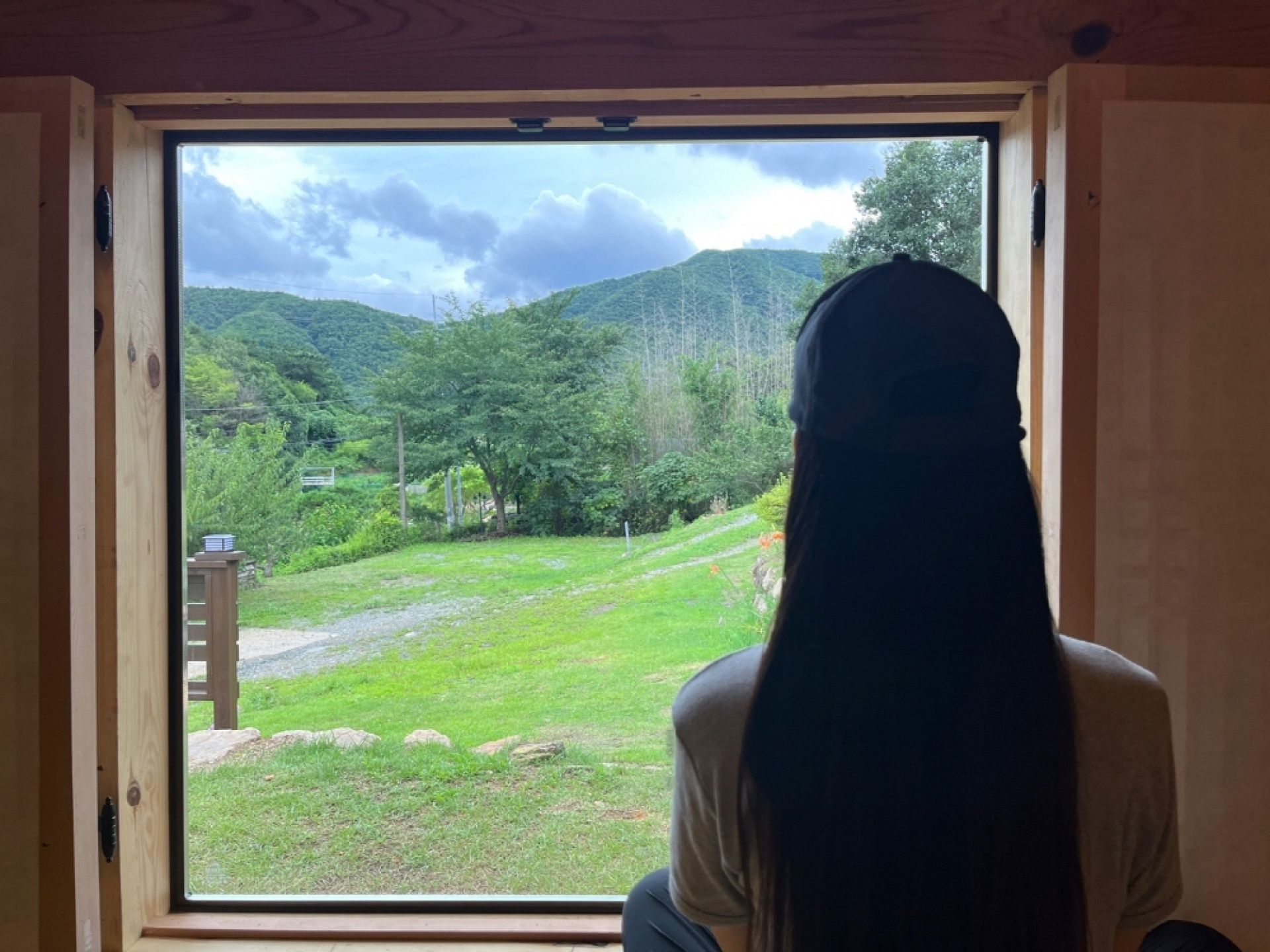 독채, 뷰창을 통해 장독대앞 정원과 산뷰를 즐길 수 있습니다